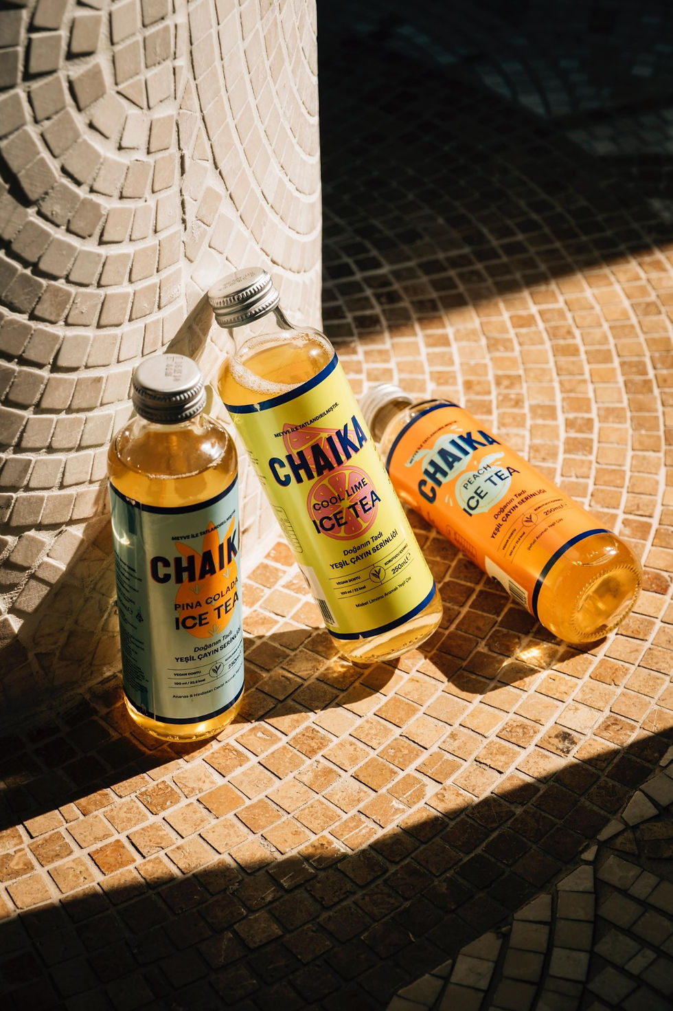 The first set of their product range is an iced tea trio (Pina Colada, Peach and Cool Lime). For this trio, we created a clean visual world with a minimalist typography and elementary fruit illustrations.